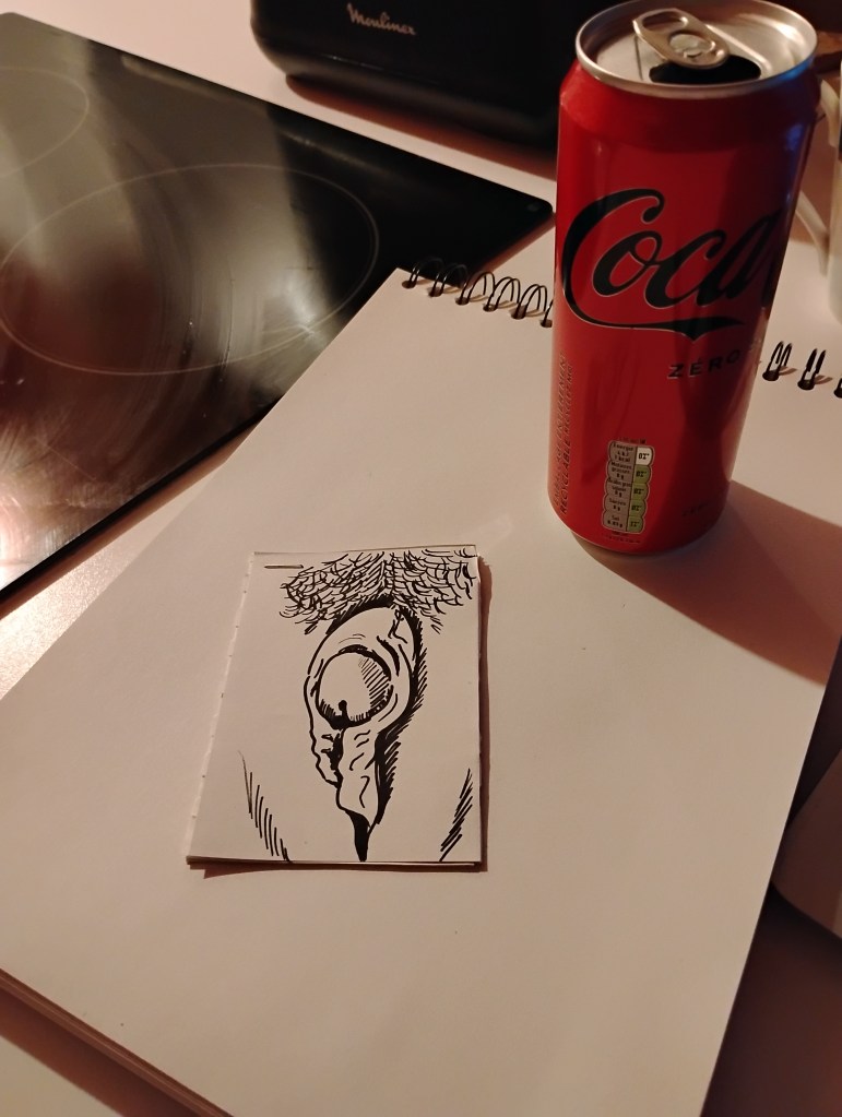The first dotd doodle, drawn between chores. Also pictured : the disgusting Coke Zero I had been drinking. Inspiration : feeling small and insignificant.
